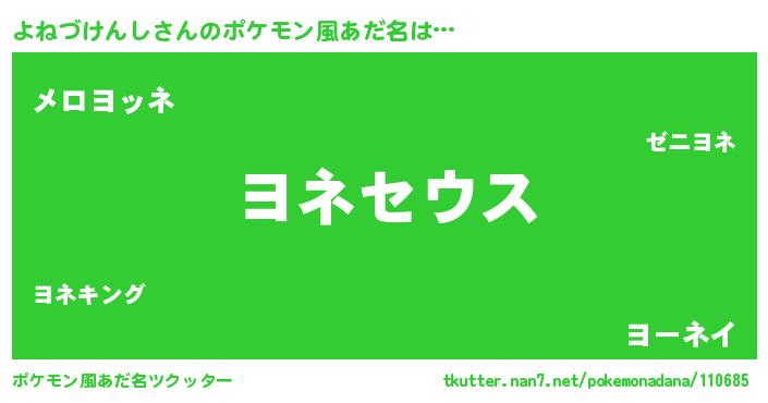 | 男性向けラノベタイトル風あだ名 | 『Re:よねづけんしから始める異世界生活』 |