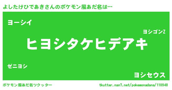 | 意味不明あだ名 | 『とにかく怪しいよしたけひであき』 |