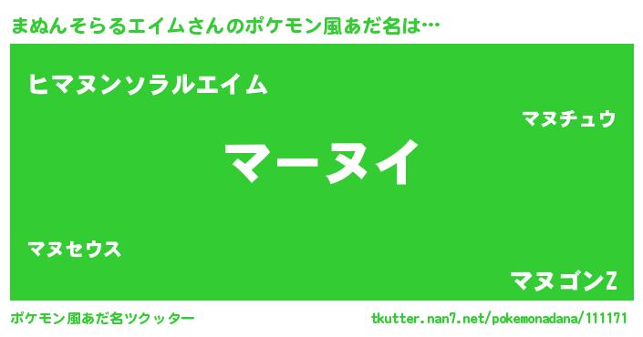 | 欧米人風あだ名 | 『ダレノガレまぬんそらるエイム』 |