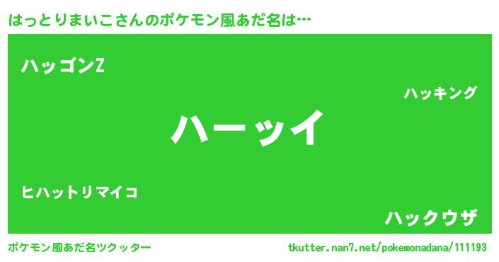 | 男性向けラノベタイトル風あだ名 | 『魔弾の王とはっとりまいこ』 |
