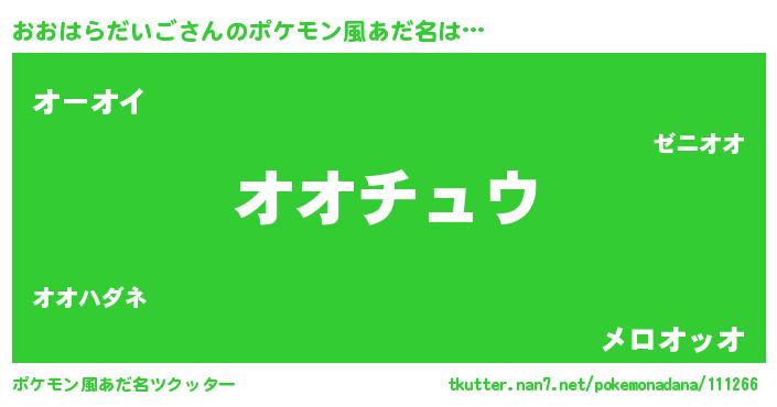 | 自動車の名前っぽいあだ名 | 『オオティマ』『オウディ』『デミオ』 |