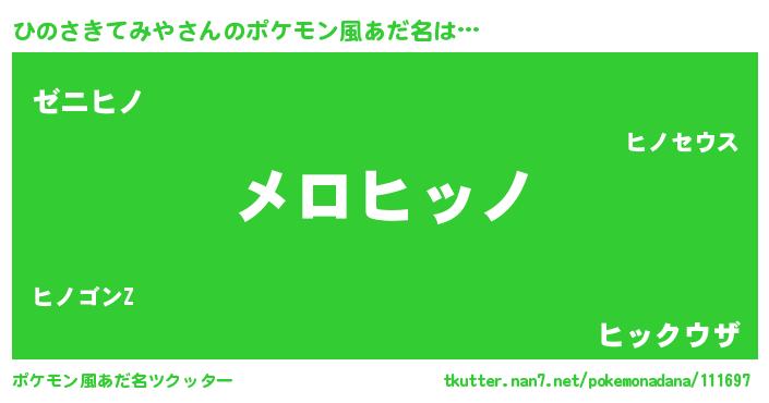 | ヘコむあだ名 | 『ひのさきてみや(笑)』『豆乳』 |