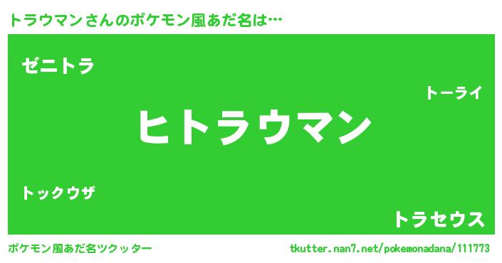 | 男性向けラノベタイトル風あだ名 | 『トラウマンの嫁は女の子じゃないと思った?』 |