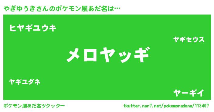 | 欧米人風あだ名 | 『やぎゆうき・ステッグマイヤー』 |