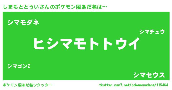 | 男性向けラノベタイトル風あだ名 | 『ダンジョンにしまもととういを求めるのは間違っているだろうか』 |