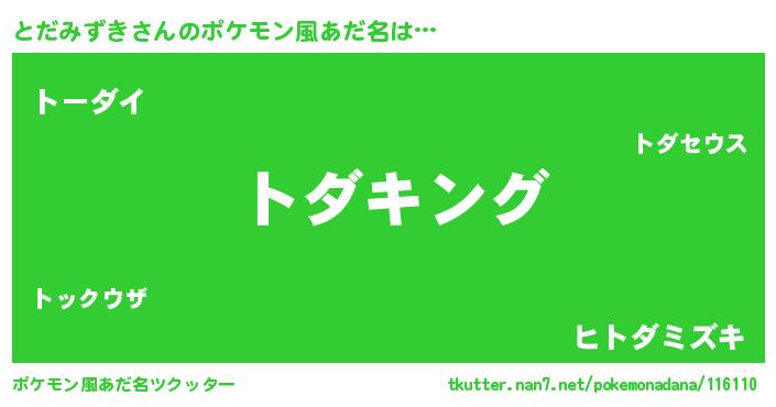 | ヒーロー風カッコイイあだ名 | 『仮面トダダー』『暗黒騎士トダ』 |
