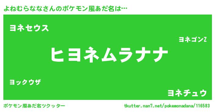 | 男性向けラノベタイトル風あだ名 | 『よねむらななの嫁は女の子じゃないと思った?』 |