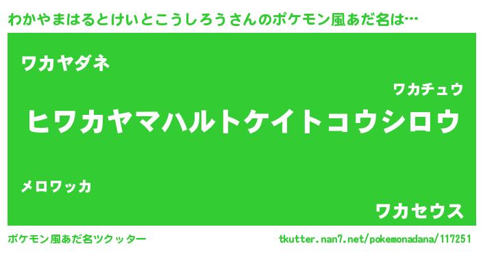 | 欧米人風あだ名 | 『ウサインわかやまはるとけいとこうしろう』 |