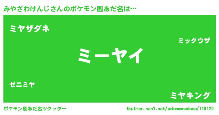 | 男性向けラノベタイトル風あだ名 | 『魔弾の王とみやざわけんじ』 |