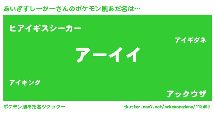 | 男性向けラノベタイトル風あだ名 | 『この素晴らしい世界にあいぎすしーかーを!』 |