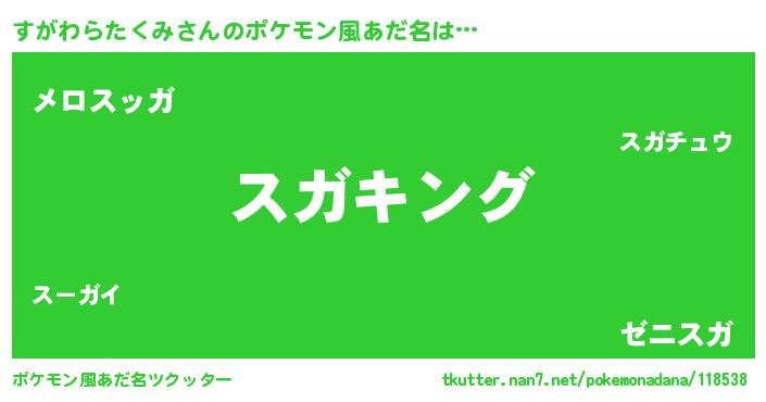 | 男性向けラノベタイトル風あだ名 | 『転生したらすがわらたくみだった件』 |