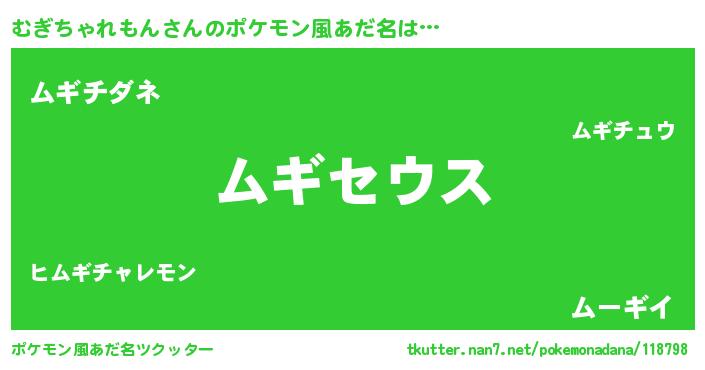 | 男性向けラノベタイトル風あだ名 | 『Re:むぎちゃれもんから始める異世界生活』 |