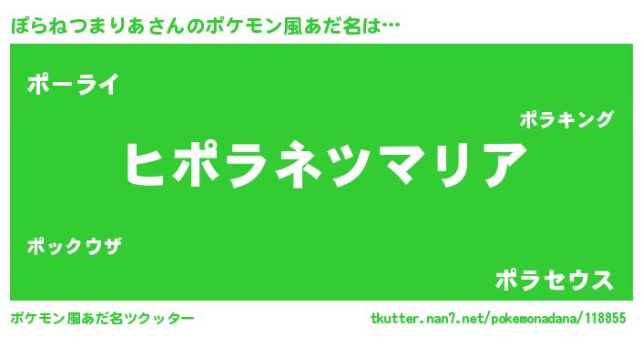 | 女子向けラノベタイトル風あだ名 | 『ぽらねつまりあは平凡を望む』 |