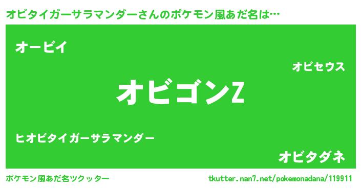 | 男性向けラノベタイトル風あだ名 | 『オビタイガーサラマンダーに滅ぼされるだけの簡単なお仕事です』 |