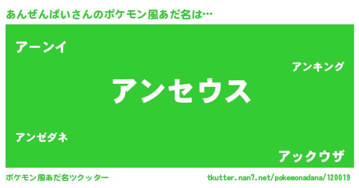 | 男性向けラノベタイトル風あだ名 | 『Re:あんぜんぱいから始める異世界生活』 |