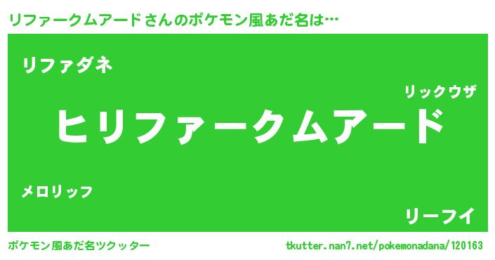| 男性向けラノベタイトル風あだ名 | 『リファークムアードの嫁は女の子じゃないと思った?』 |