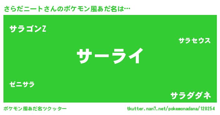| 料理風あだ名 | 『さらだニートのカルパッチョ風』 |