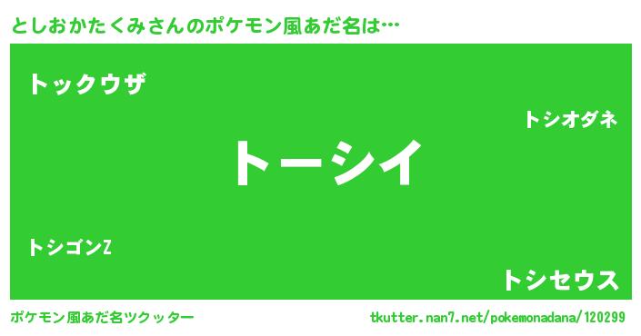 | 男性向けラノベタイトル風あだ名 | 『魔弾の王ととしおかたくみ』 |