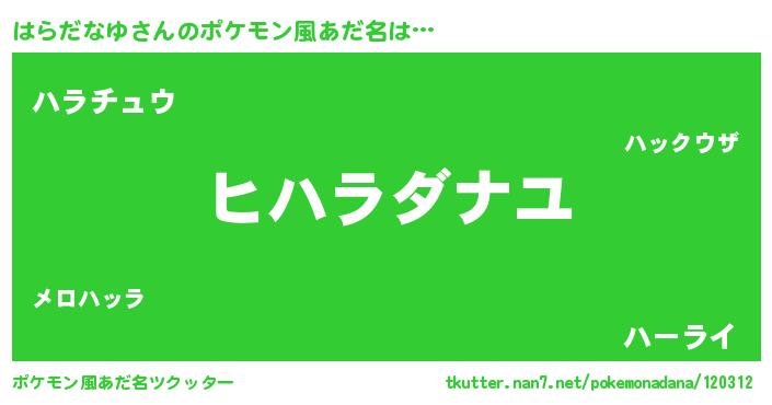 | 欧米人風あだ名 | 『ウサインはらだなゆ』 |