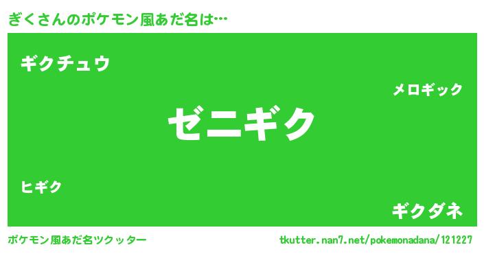 | 自動車の名前っぽいあだ名 | 『ヴィッギ』『プリギク』『ギクア』 |