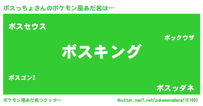 | 男性向けラノベタイトル風あだ名 | 『転生したらボスっちょだった件』 |