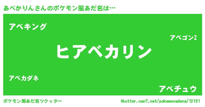 | 男性向けラノベタイトル風あだ名 | 『あべかりんの嫁は女の子じゃないと思った?』 |