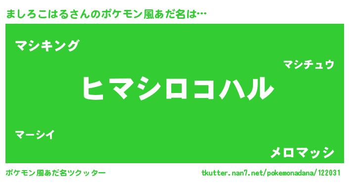 | 欧米人風あだ名 | 『ウサインましろこはる』 |