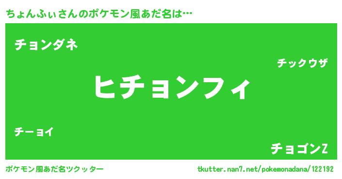 | 女子向けラノベタイトル風あだ名 | 『ちょんふぃの卵を拾いまして』 |