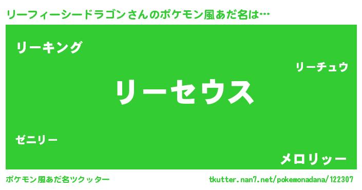 | 男性向けラノベタイトル風あだ名 | 『Re:リーフィーシードラゴンから始める異世界生活』 |