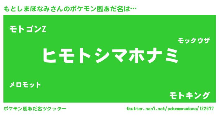 | 男性向けラノベタイトル風あだ名 | 『もとしまほなみの嫁は女の子じゃないと思った?』 |