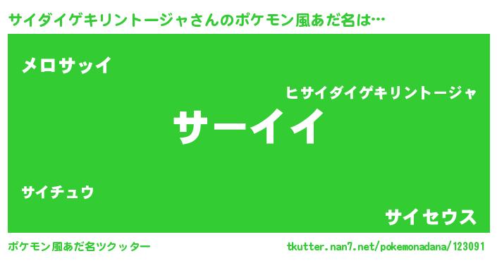 | 意味不明あだ名 | 『住所不定無職サイダイゲキリントージャ(89歳)』 |