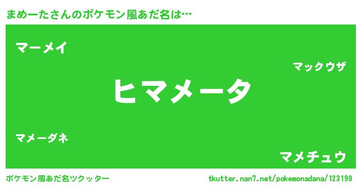 | 意味不明あだ名 | 『とにかく怪しいまめーた』 |