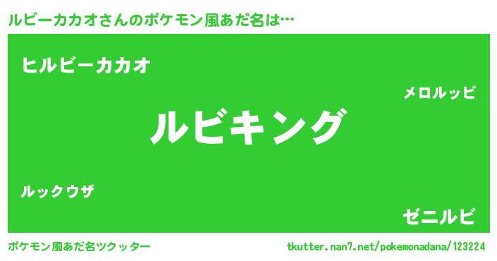 | 男性向けラノベタイトル風あだ名 | 『ルビーカカオ~年齢イコール彼女いない歴の魔法使い~』 |