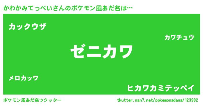 | ヒーロー風カッコイイあだ名 | 『ネオカワカミテッペイ』『黄金騎士カワ』 |