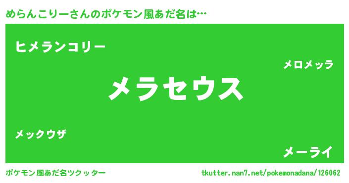 | 意味不明あだ名 | 『自称めらんこりー』 |