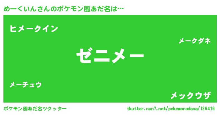 | 男性向けラノベタイトル風あだ名 | 『めーくいんという概念が存在しない退屈な世界 』 |