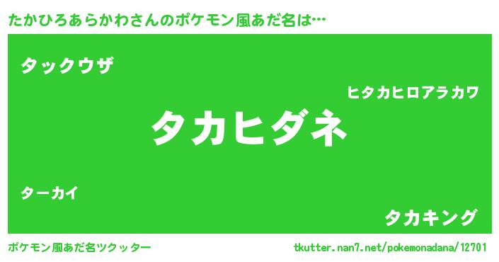 | ファンタジー風あだ名 | 『エターナルタカヒロアラカワー』 |