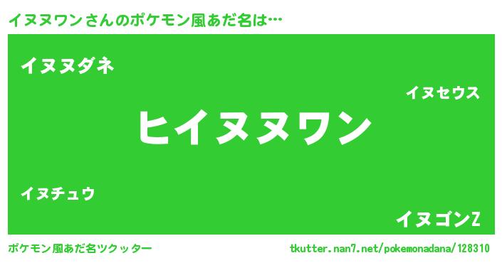 | 男性向けラノベタイトル風あだ名 | 『イヌヌワンの嫁は女の子じゃないと思った?』 |