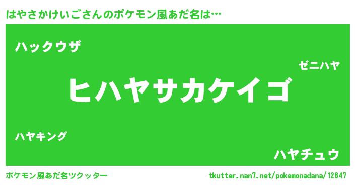 | 男性向けラノベタイトル風あだ名 | 『はやさかけいごの嫁は女の子じゃないと思った?』 |
