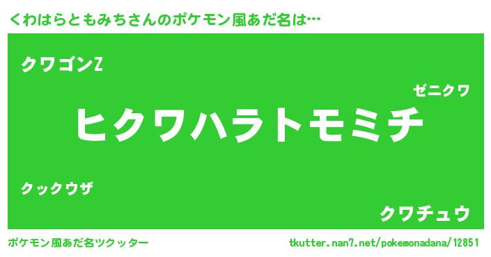 | 男性向けラノベタイトル風あだ名 | 『くわはらともみちの嫁は女の子じゃないと思った?』 |