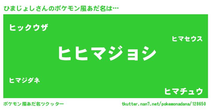 | 男性向けラノベタイトル風あだ名 | 『ひまじょしの嫁は女の子じゃないと思った?』 |