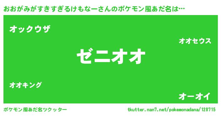| ヒーロー風カッコイイあだ名 | 『ネオオオガミガスキスギルケモナー』 |