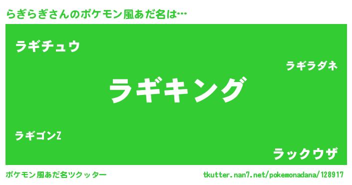 | 男性向けラノベタイトル風あだ名 | 『ラギラギスレイヤー』『らぎらぎの憂鬱』 |