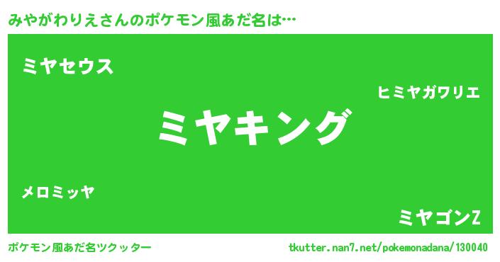 | ヘコむあだ名 | 『みや太郎』『みやがわりえ(苦笑)』 |