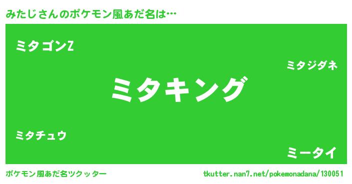 | ヒーロー風カッコイイあだ名 | 『仮面ミタダー』『ウルトラみたじマン』 |