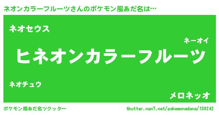 | 欧米人風あだ名 | 『ウサインネオンカラーフルーツ』 |