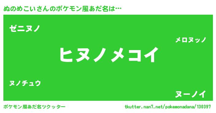 | 女子向けラノベタイトル風あだ名 | 『ぬのめこいの卵を拾いまして』 |