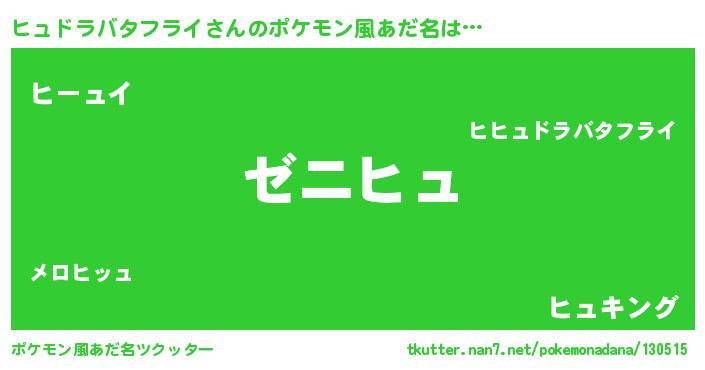 | ヘコむあだ名 | 『ヒュドラバタフライ(爆)』『ヒュっちょ』 |