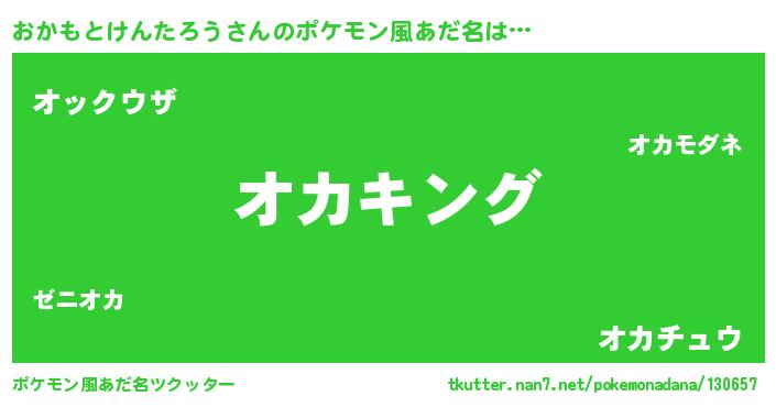 | 男性向けラノベタイトル風あだ名 | 『おかもとけんたろう~年齢イコール彼女いない歴の魔法使い~』 |