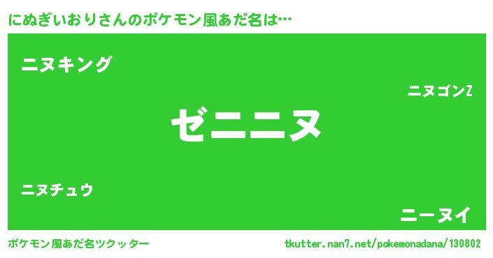 | ヒーロー風カッコイイあだ名 | 『ネオニヌギイオリ』『仮面ニヌダー』 |